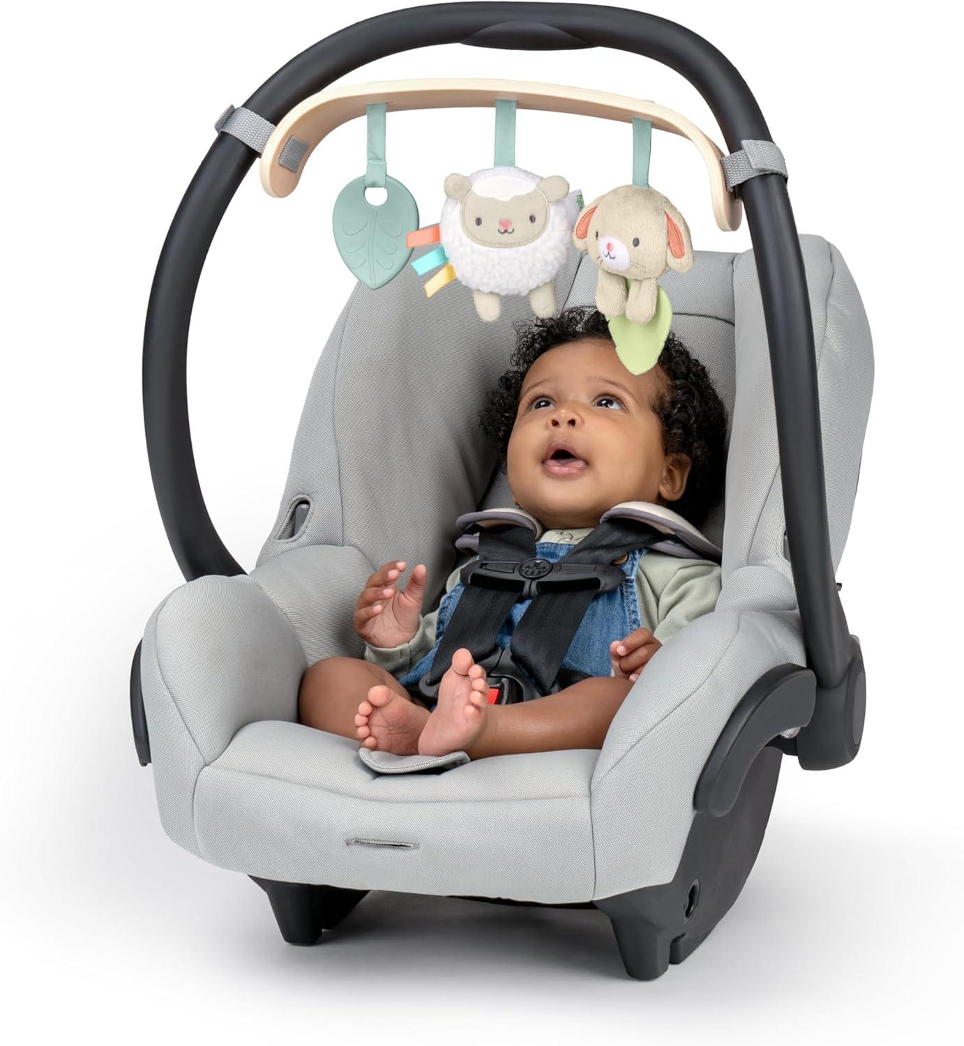 Ingenuity Calm Springs Soothing Essentials Gift Set – Musical Toy, Rattle, Mirror, 2 Teethers for Baby(Wood Carrier Toy Bar)