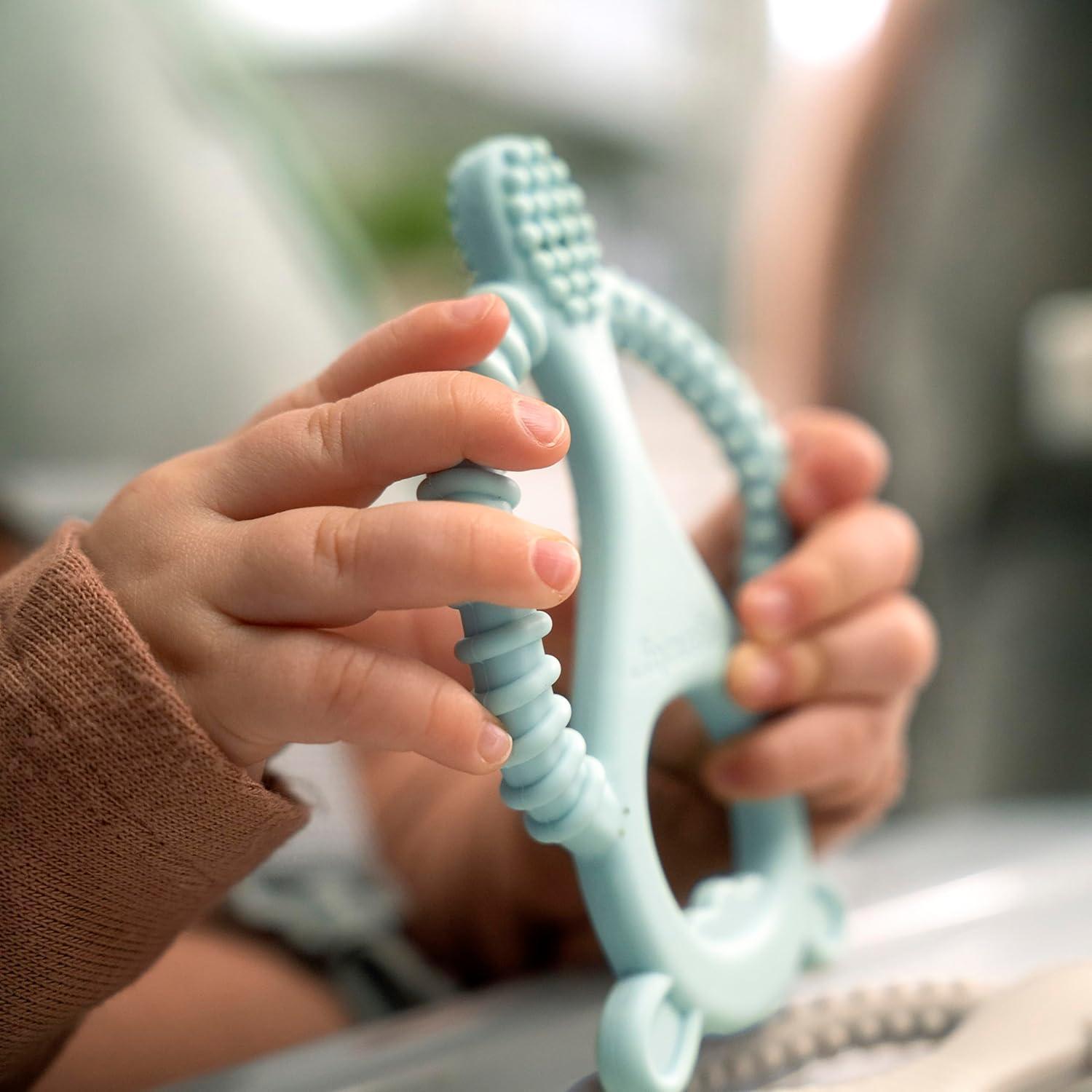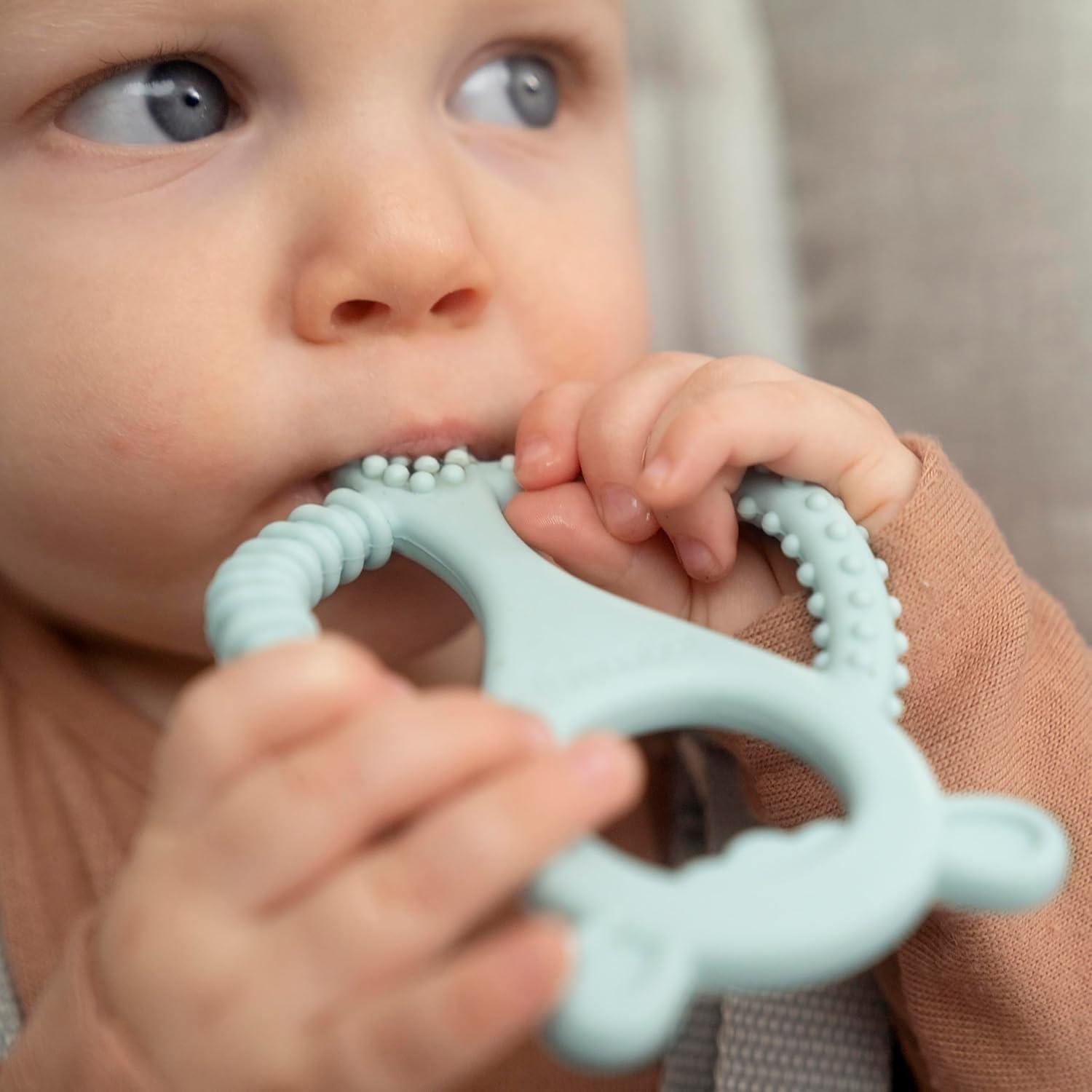 Set of 2 teethers with smooth textures, silicone bristles & indentations to help soothe sore gums in every teething stage