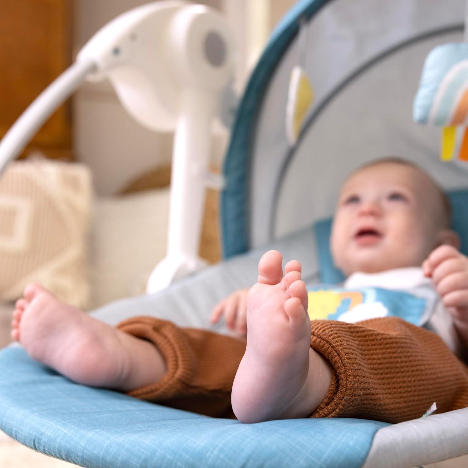 For whatever soothing motion your little one needs, the Ity by Ingenuity Swingity Swing Easy-Fold Portable Swing is just your baby’s speed. With TrueSpeed Technology, 6 different speed options allow you to select the most calming pace. Babies can be soothed in this comfy seat with 2 reclining positions and a removable headrest for newborns. Easily move between rooms with a take-along handle and easy-fold design. Cleanup is breeze with a washable seat pad. An adjustable 5-point harness keeps baby secure from birth to 9 months. The Swingity Swing gives your little one a comforting, compact spot so you can both relax.