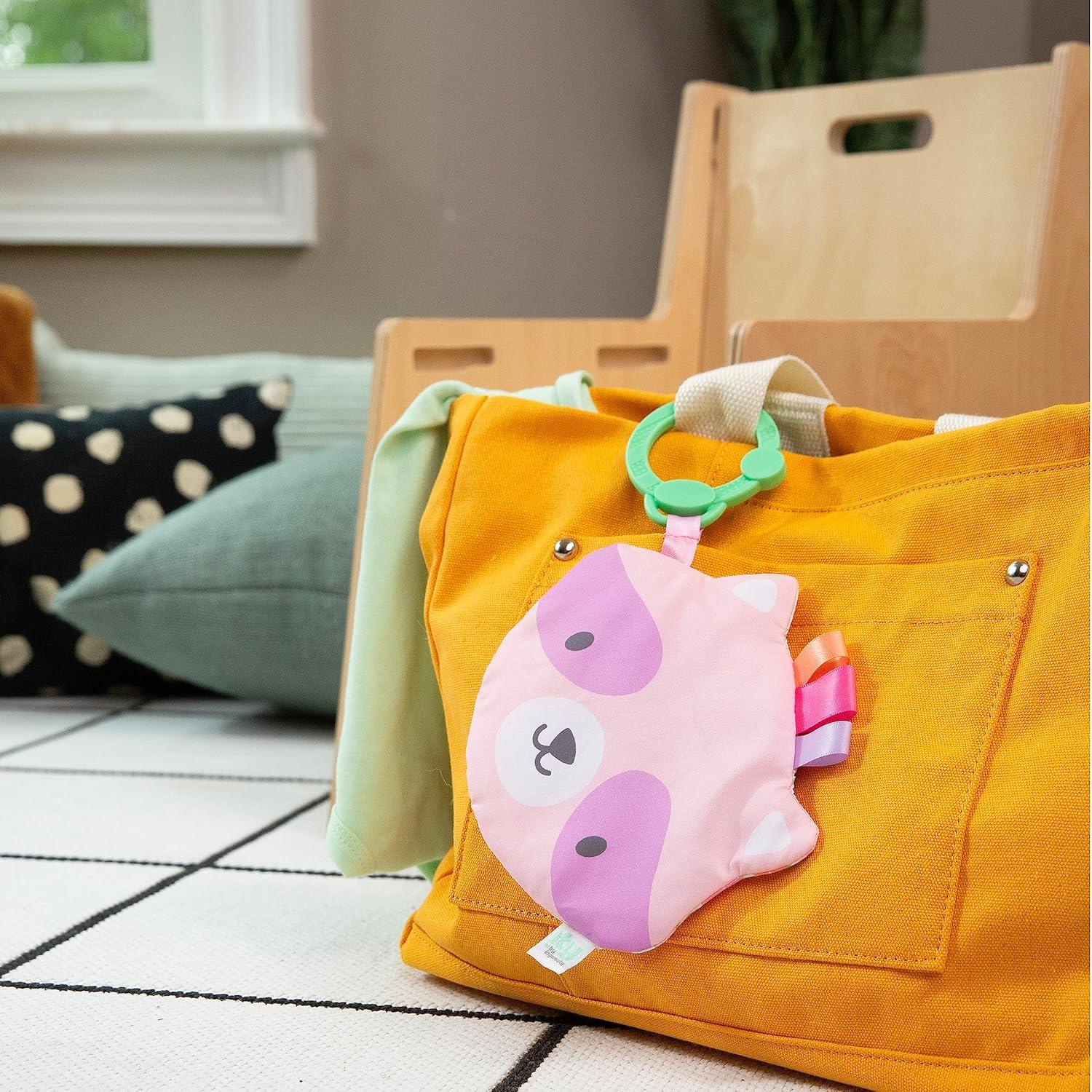 Keep your baby busy and calm with an all-in-one activity toy and soother. The Nate activity toy from Ingenuity combines the cuddly comfort of a stuffed animal with the entertainment of a developmental toy. The plush fabrics are huggable soft, while delicate details like wooden rings and knotted fabrics keep your baby's attention. Use the link attachment to hang this infant toy from the car seat, stroller or play gym. Teddy bear Nate loves to hibernate, but he'll rouse from his slumber to play with your little one!