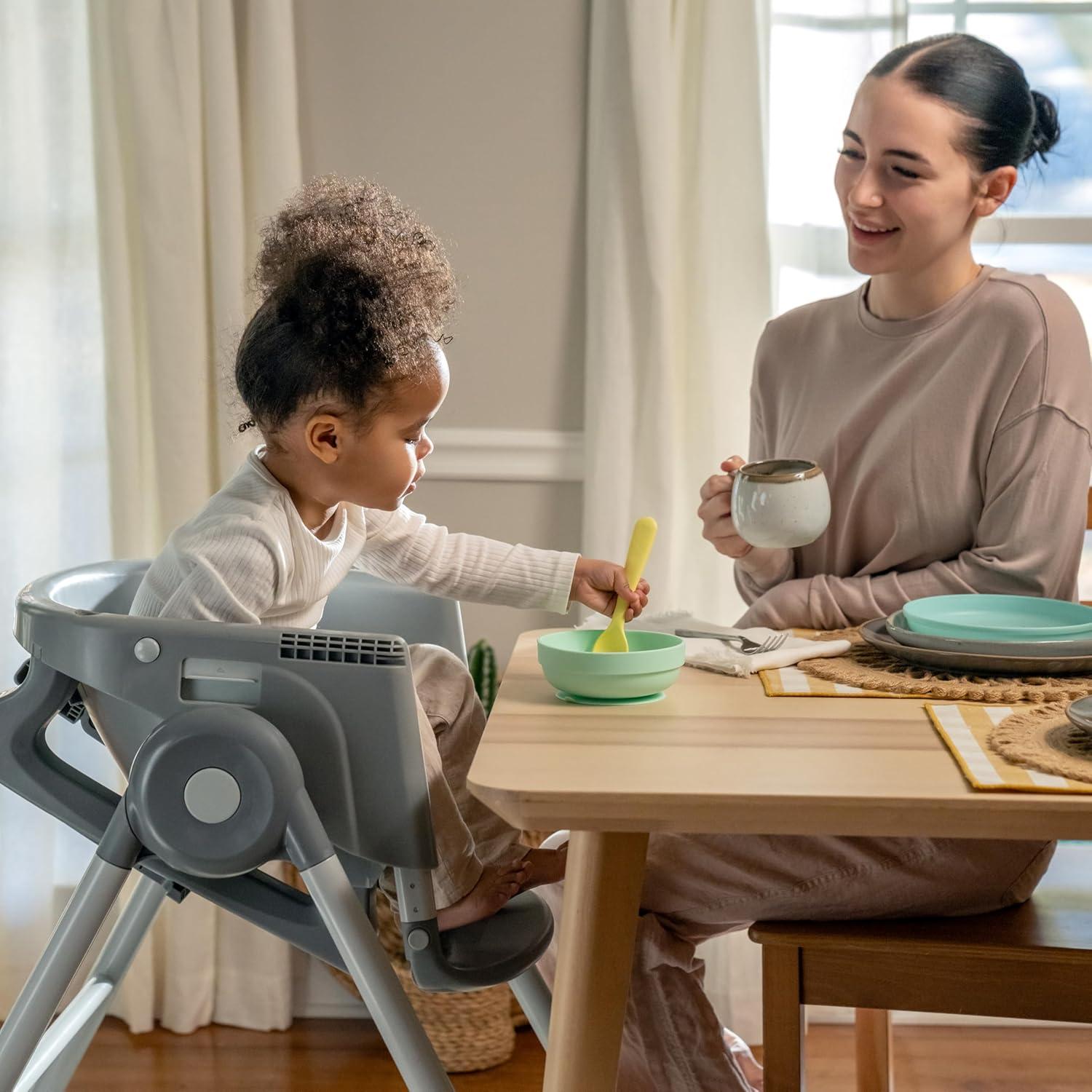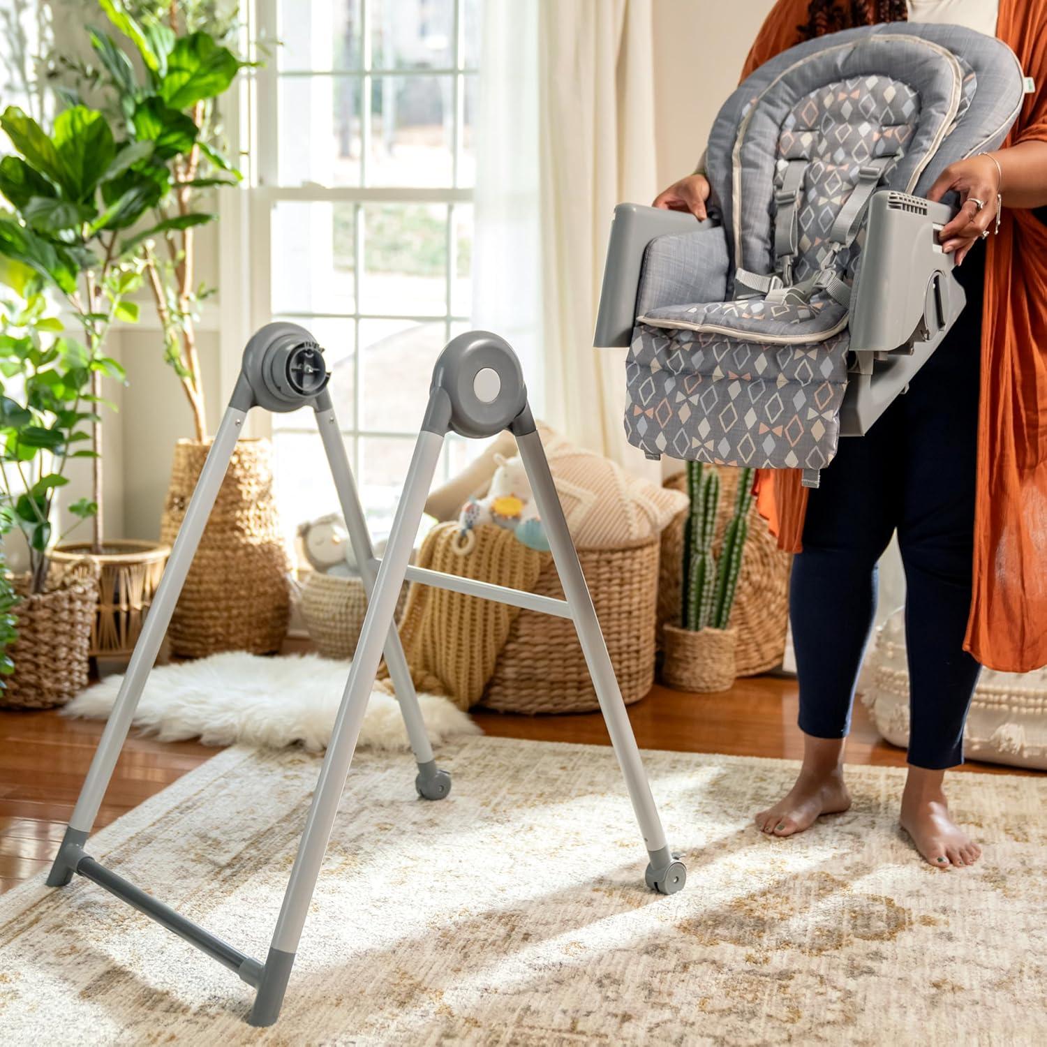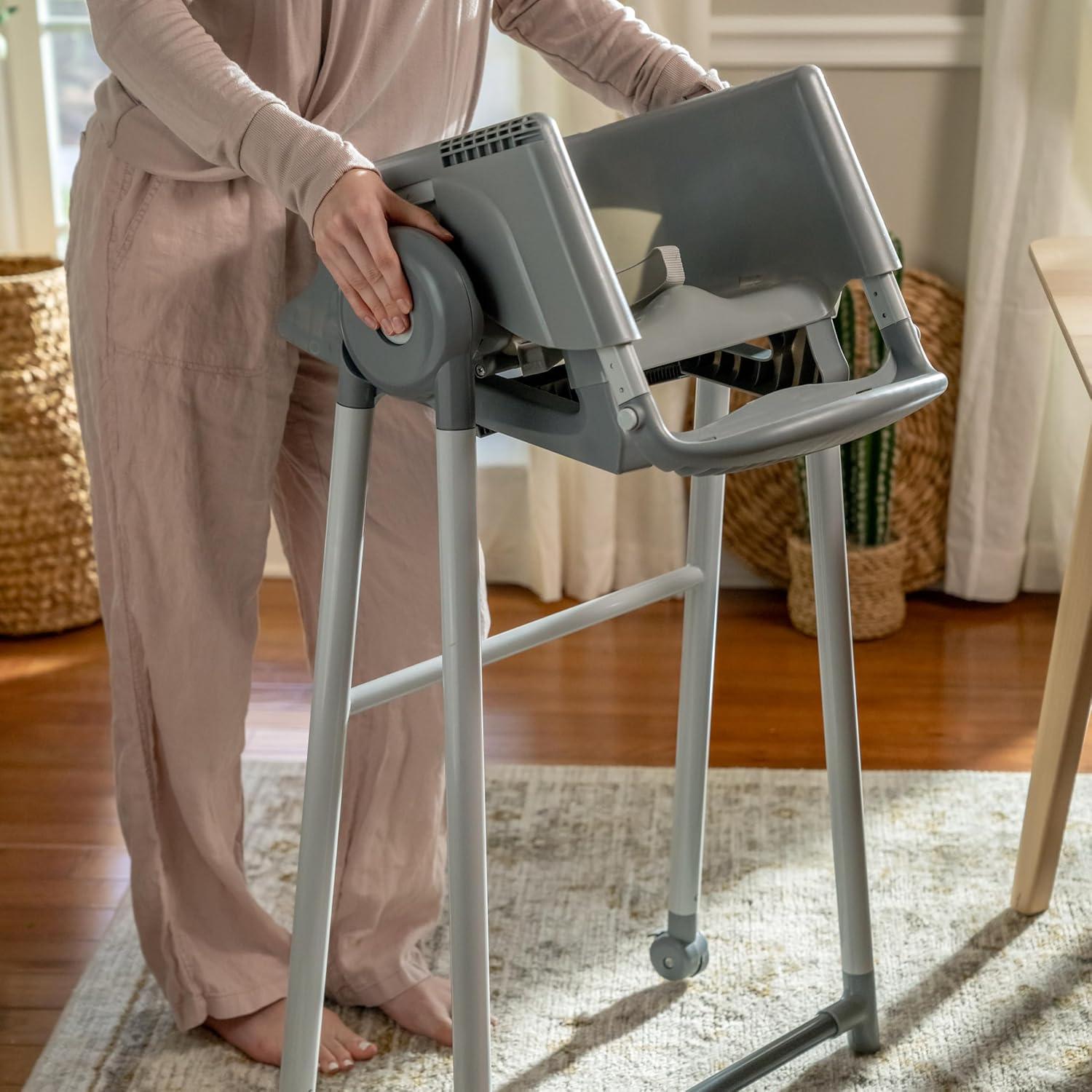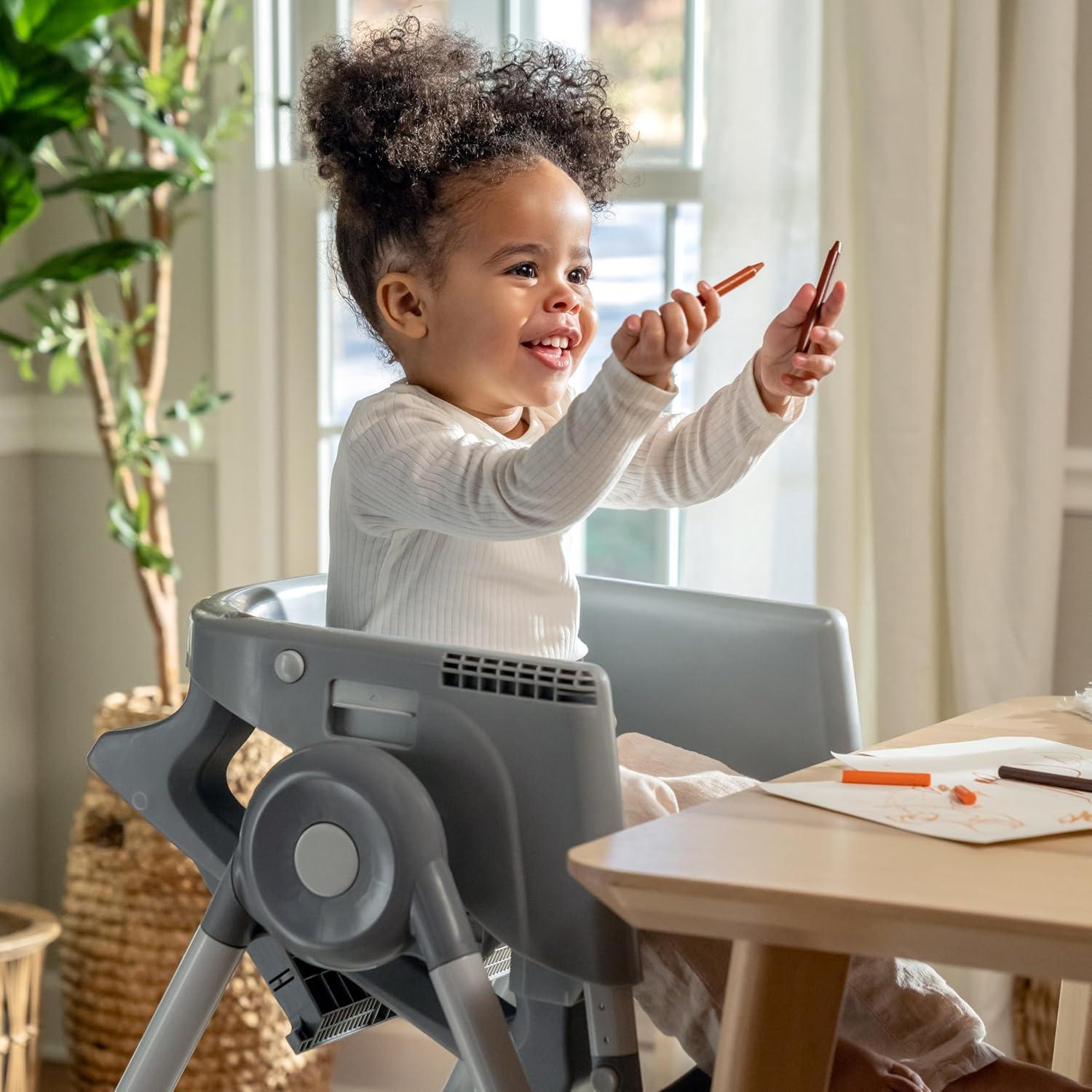 The Ingenuity Proper Positioner 7-in-1 patent-pending high chair features 7 grow-with-me stages of feeding and promotes good posture to encourage better digestion from newborn to toddler. The first 2 features cater to baby's early stages: the full-tilt recline mimics mom's hold for bottle feeding, while Ingenuity's first-ever removable rocking infant seat keeps baby calm. When your little one is ready for bigger bites, the Proper Positioner moves from a traditional high chair to an up-to-table seat and a chair top high chair. This 7-in-1 transforms into a toddler high chair and transitions into a booster, perfect for restaurant dining. The ergonomic design helps with postural stability while the multi-position, adjustable footrest prevents dangling feet and offers added comfort to let baby focus on mealtime. 90/90/90 seating design keeps baby’s legs optimally positioned at a 90-degree angle to promote comfort and proper posture. Machine washable seat pad and insert. Keep baby safe with the 5-point safety harness until used as a toddler chair, then use with the 3-point harness. Third party safety tested and approved. Assembled dimensions: 35'' (L) x 24.5'' (W) x 45.5'' (H).