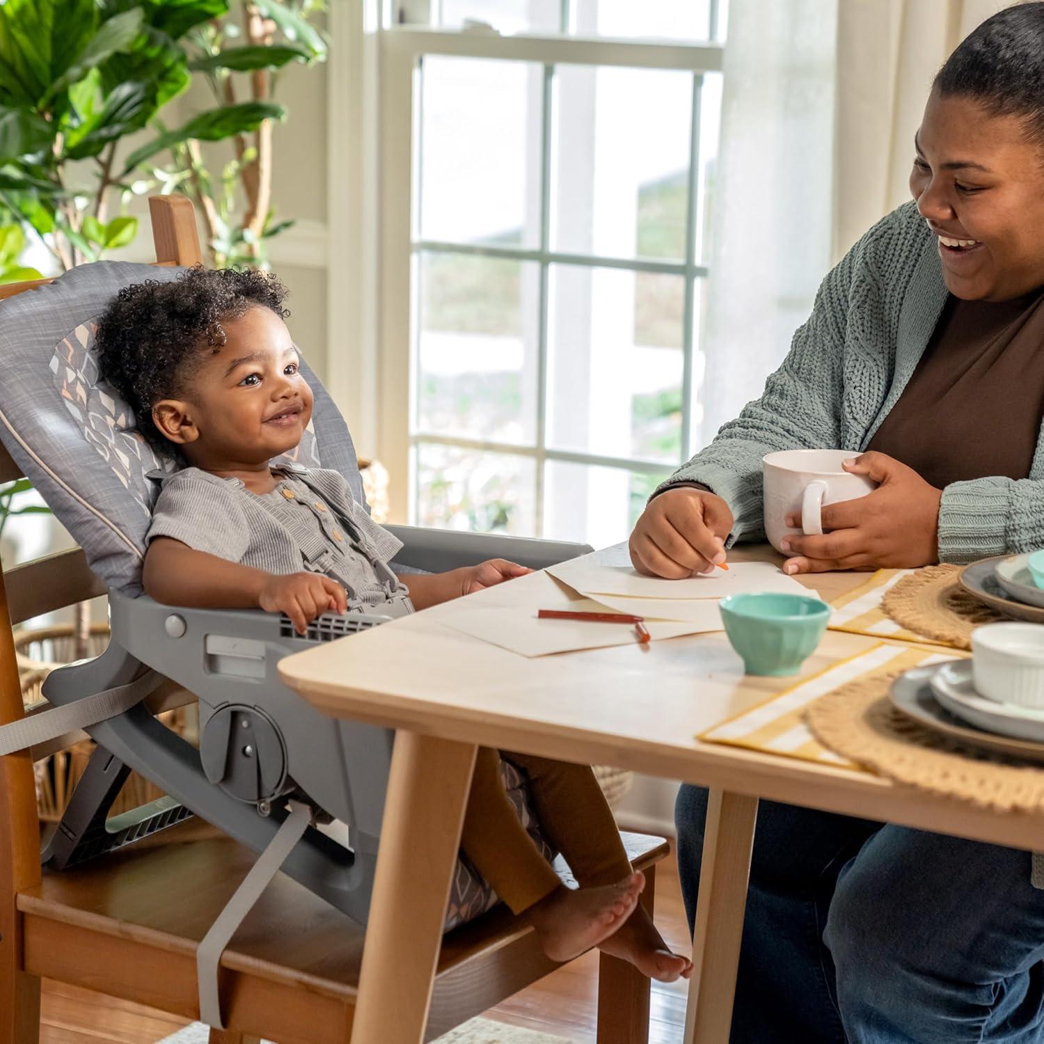 Ingenuity Proper Positioner Deluxe High Chair – 7-in-1 Convertible Baby Seat, Faux Wood Print Legs, Unisex, for Ages 0-36 Months(Parker)