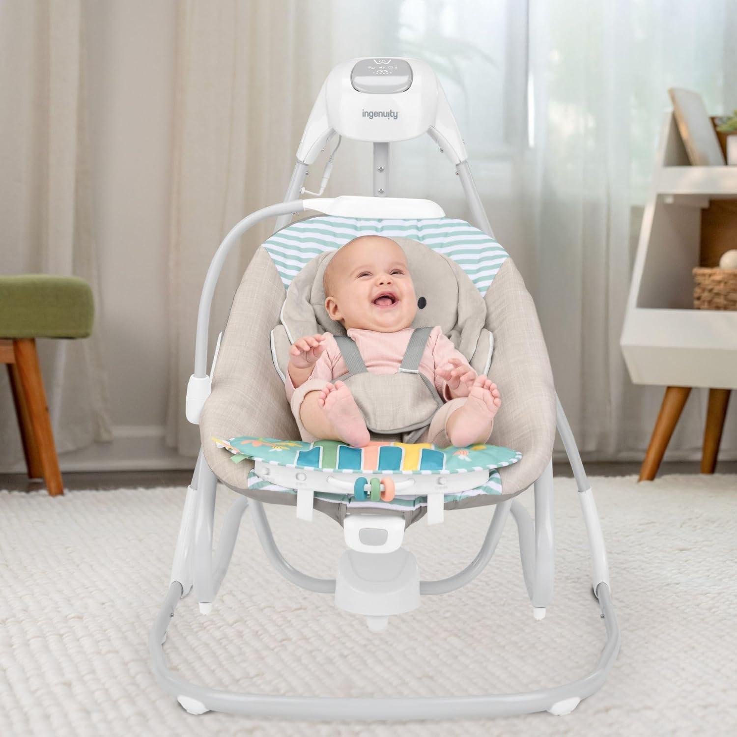 Ingenuity SimpleComfort Lightweight Compact 6-Speed Multi-Direction Baby Swing, Vibrations & Nature Sounds, 0-9 Months 6-20 lbs (Pink Cassidy)(Sylvi)