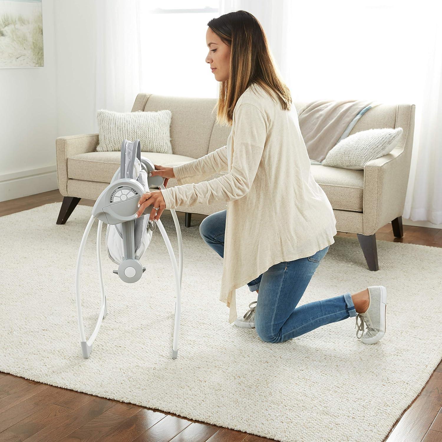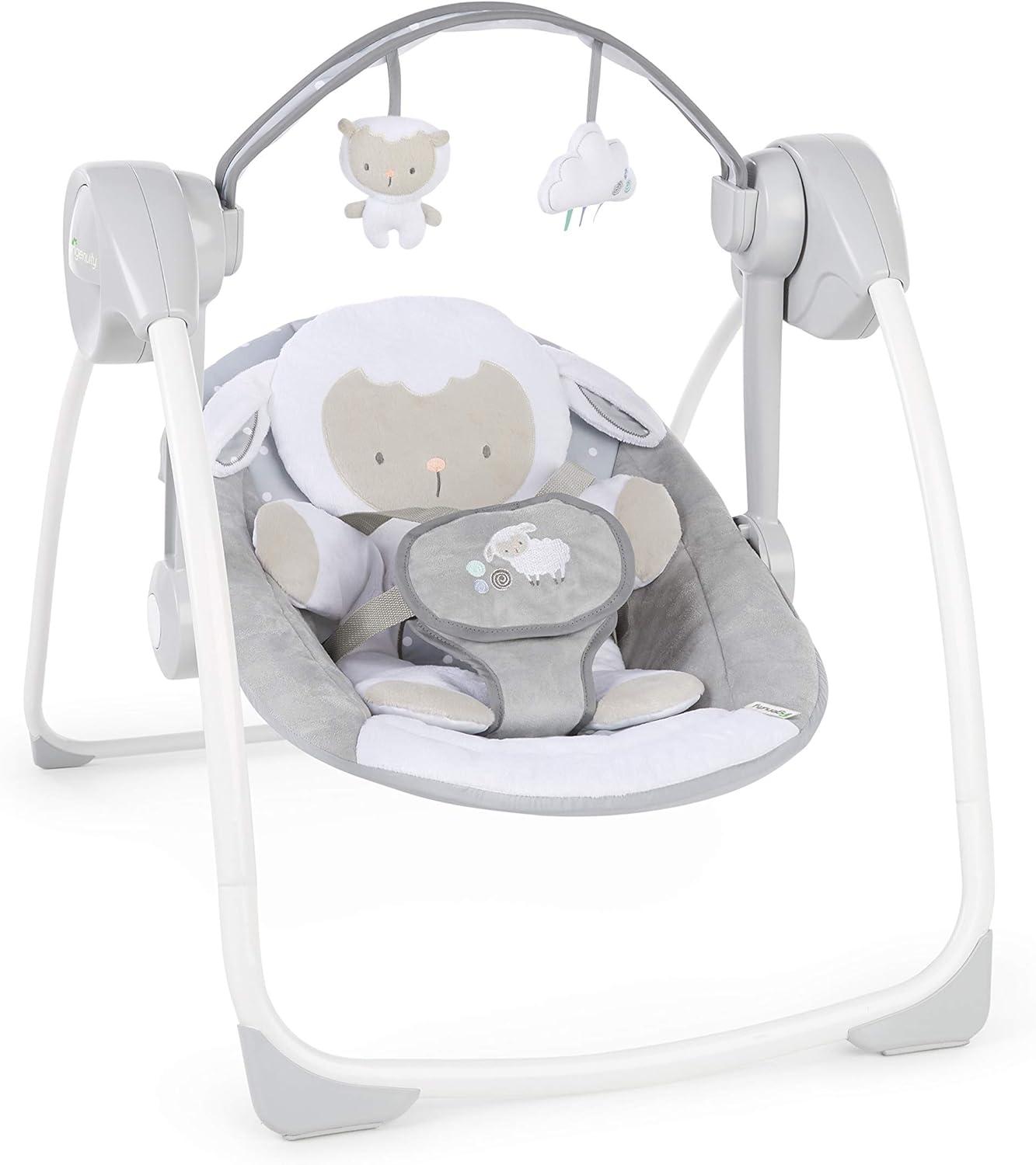 Ingenuity Soothe ‘n Delight Compact Portable 6-Speed Plush Baby Swing with Music, Folds Easy, 0-9 Months 6-20 lbs (Cozy Kingdom)(Cuddle Lamb)