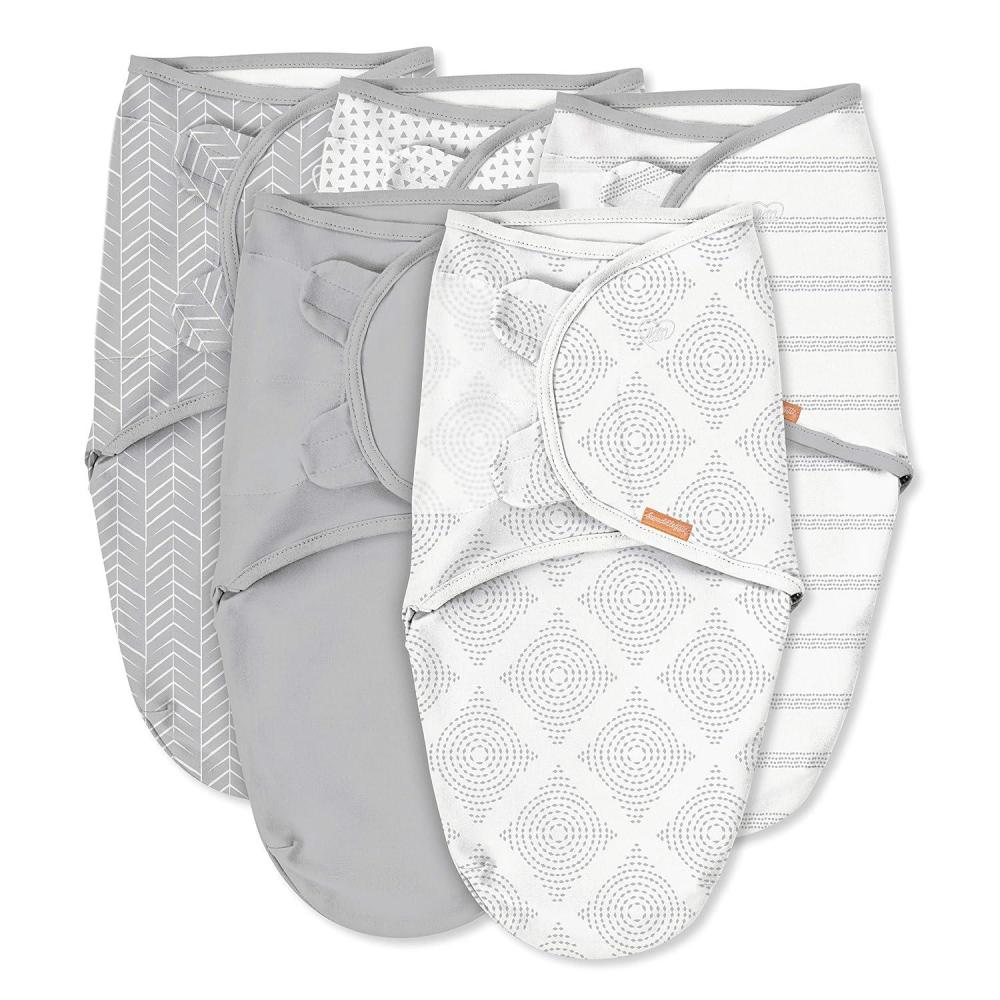SwaddleMe by Ingenuity Easy Change Baby Swaddle in Size Small/Medium, 0-3 Months, 7-14 Pounds, 3-Pack with Easy Change Zipper -Zebra Botanical(Grays for Days)