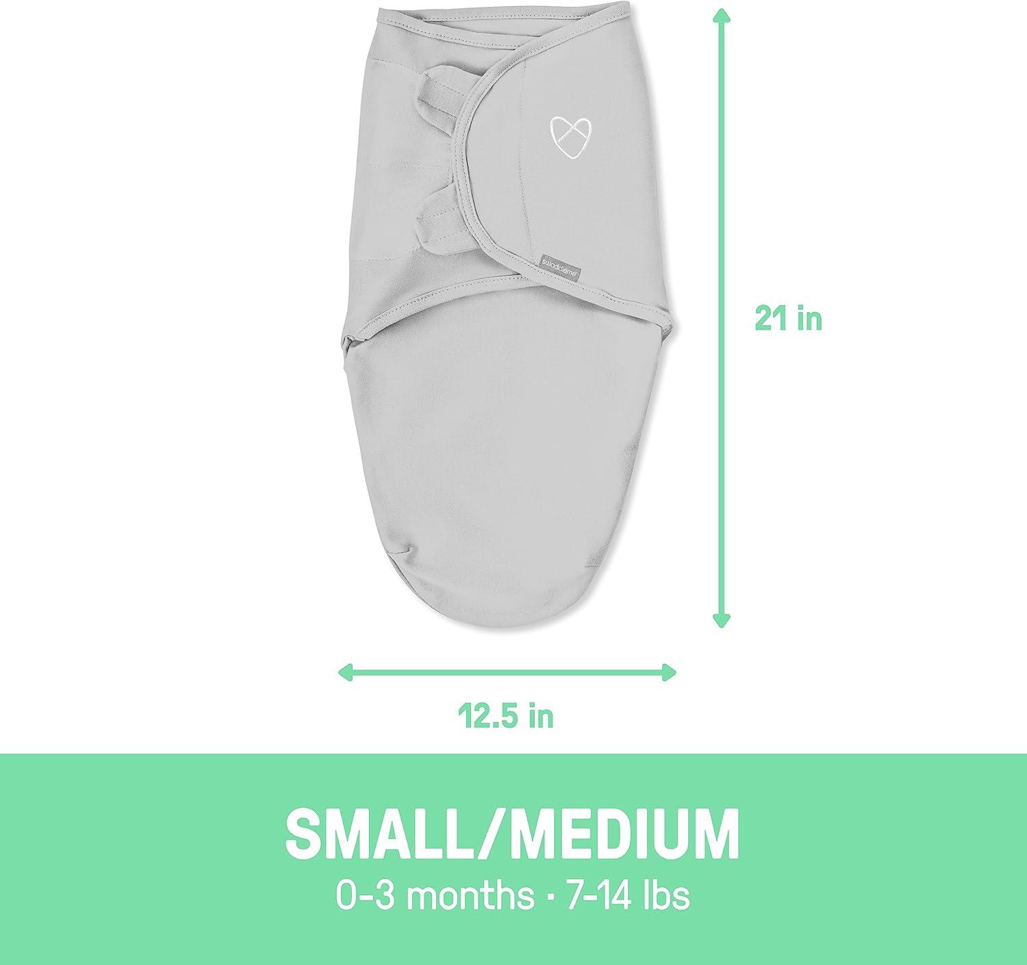 Keep your precious baby calm and comforted with the the SwaddleMe by Ingenuity Original Swaddle in small/medium. This swaddle is designed to fit babies ages 0-3 months, 7-14 pounds, and up to 26 inches long. The easy-to-use swaddle wrap creates a snug, womb-like feeling for your little one. Simply position the adjustable wings around your baby and press on the hook-and-loop closures to secure. The closures prevent the swaddle from loosening, therefore keeping baby safely secure. The cozy fit of this swaddle helps prevent the startle reflex that can wake baby. The hip-healthy design leaves plenty of room for baby to move. This soft swaddle is made of durable natural fiber (100% cotton) and is machine-washable for easy cleaning. This baby swaddle blanket wrap is part of Stage 1 in the SwaddleMe Stages of Sleep, made for newborns who aren't rolling over yet and like to be swaddled with their arms in. When baby starts showing signs of rolling, transition to Stage 2. The SwaddleMe by Ingenuity Original Swaddle is a great addition to any baby shower registry!
