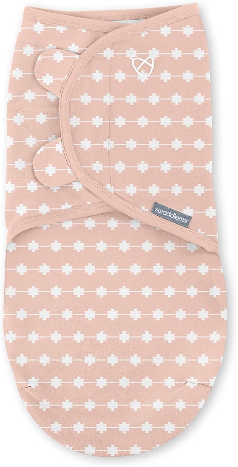 Keep your precious baby calm and comforted with the the SwaddleMe by Ingenuity Original Swaddle in small/medium. This swaddle is designed to fit babies ages 0-3 months, 7-14 pounds, and up to 26 inches long. The easy-to-use swaddle wrap creates a snug, womb-like feeling for your little one. Simply position the adjustable wings around your baby and press on the hook-and-loop closures to secure. The closures prevent the swaddle from loosening, therefore keeping baby safely secure. The cozy fit of this swaddle helps prevent the startle reflex that can wake baby. The hip-healthy design leaves plenty of room for baby to move. This soft swaddle is made of durable natural fiber (100% cotton) and is machine-washable for easy cleaning. This baby swaddle blanket wrap is part of Stage 1 in the SwaddleMe Stages of Sleep, made for newborns who aren't rolling over yet and like to be swaddled with their arms in. When baby starts showing signs of rolling, transition to Stage 2. The SwaddleMe by Ingenuity Original Swaddle is a great addition to any baby shower registry!
