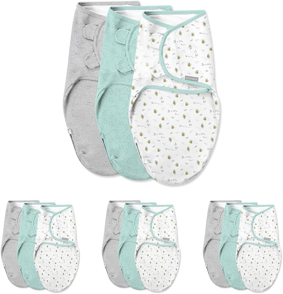 SwaddleMe by Ingenuity Original Swaddle, Size Small/Medium, For Ages 0-3 Months, 7-14 Pounds, Up to 26 Inches Long, 3-Pack Baby Swaddle Blanket Wrap(Little Bees)